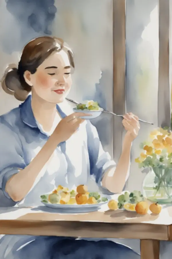 Try to eat at least one meal a day without distractions. Put away your phone, turn off the TV, and really focus on your food. Notice the flavors, textures, and how it makes you feel. This practice can help you make better food choices, improve digestion, and make mealtimes more enjoyable.